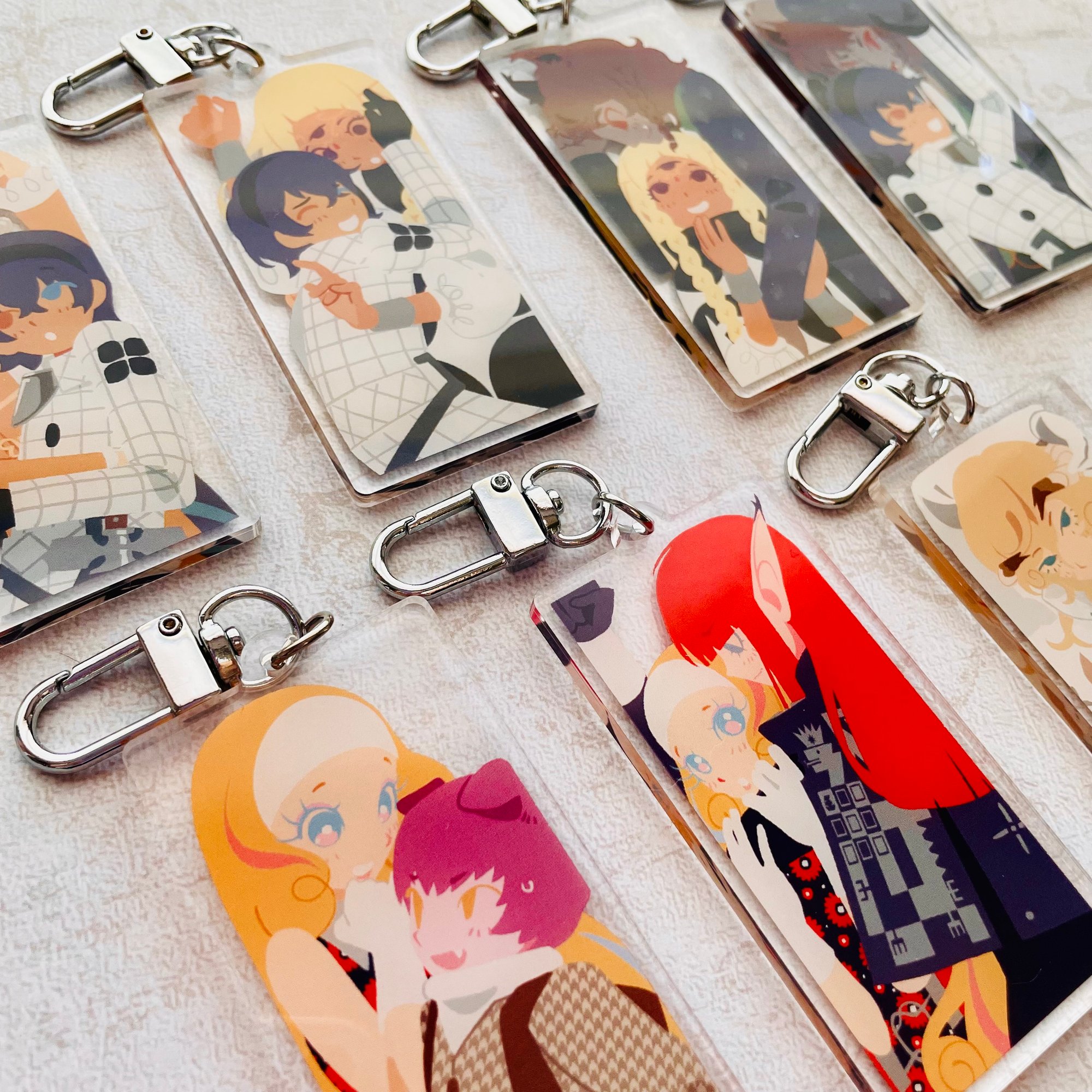 The double-sided charms are 3 inches (~5.1cm) with a silver U-shaped clasp.