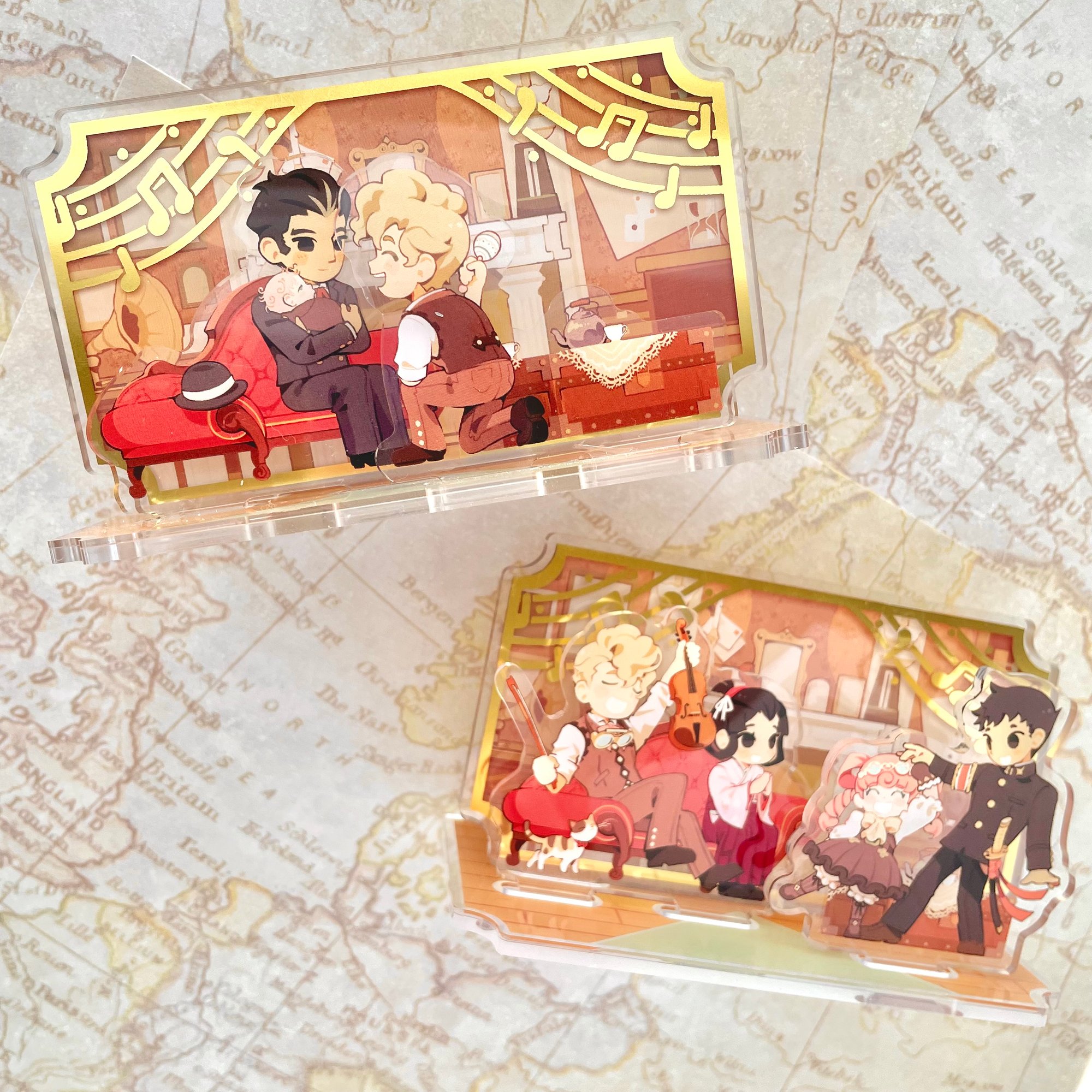 This six-part acrylic standee features Ryunosuke Naruhodo, Susato Mikotoba, Herlock Sholmes, Iris Wilson, Yujin Mikotoba, and Wagahai from The Great Ace Attorney.
